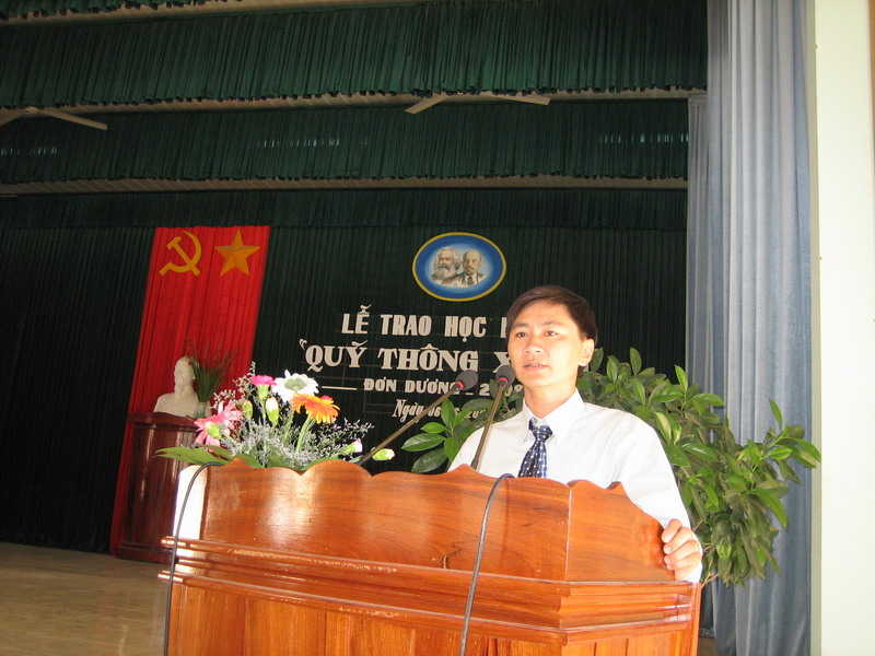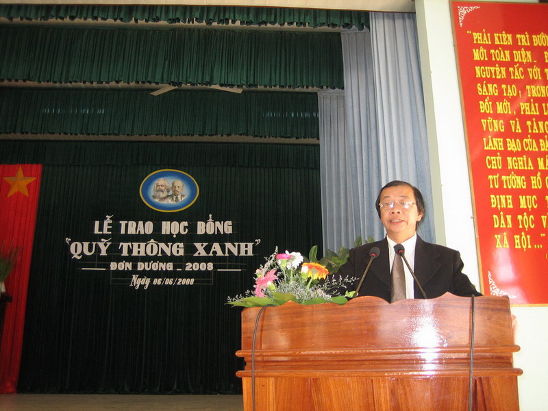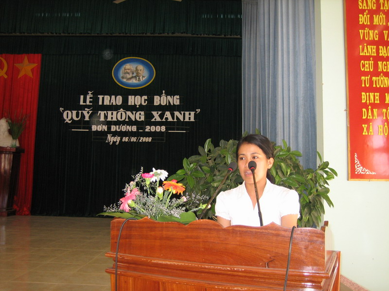 Đến dự có ông Lê Hữu Túc, Phó Chủ tịch UBND huyện; ông Lê Chính, Phó Chủ tịch UB MTTQ huyện; đại diện Hội Liên hiệp Phụ nữ huyện Đơn Dương, Đoàn TNCS HCM huyện Đơn Dương và Ban giám hiệu năm trường THPT. Đây là lần đầu tiên UBND huyện phối hợp cùng Quỹ Thông Xanh tổ chức tập trung tất cả học sinh được nhận học bổng để trao tại huyện. Ông Lê Hữu Túc đã thay mặt chính quyền địa phương ghi nhận và biểu dương việc làm nhiều ý nghĩa của những người con xa quê hương đã tiếp sức và có sự giúp đỡ thiết thực cho những em học sinh có hoàn cảnh khó khăn tại quê nhà, khuyến khích các em tiếp tục con đường học vấn. Anh Phạm Quốc Văn, Trưởng Ban điều hành Quỹ Thông xanh, và chị Nguyễn Thuỳ Liên, một thành viên trẻ trong Ban điều hành, đã đại diện về trao học bổng cho các em. Nhận học bổng đợt này là những em học sinh có học lực khá giỏi, có khả năng thi đậu vào các trường đại học, cao đẳng trong nước, nhưng đều có hoàn cảnh gia đình khó khăn...